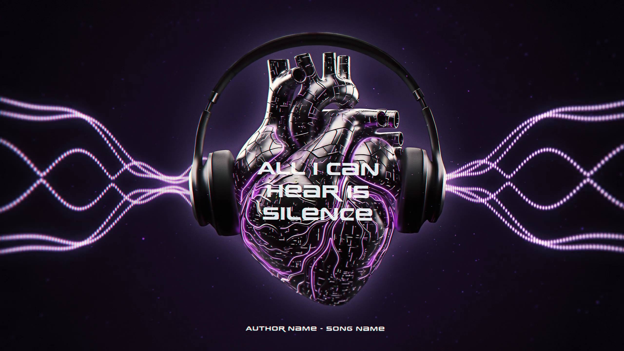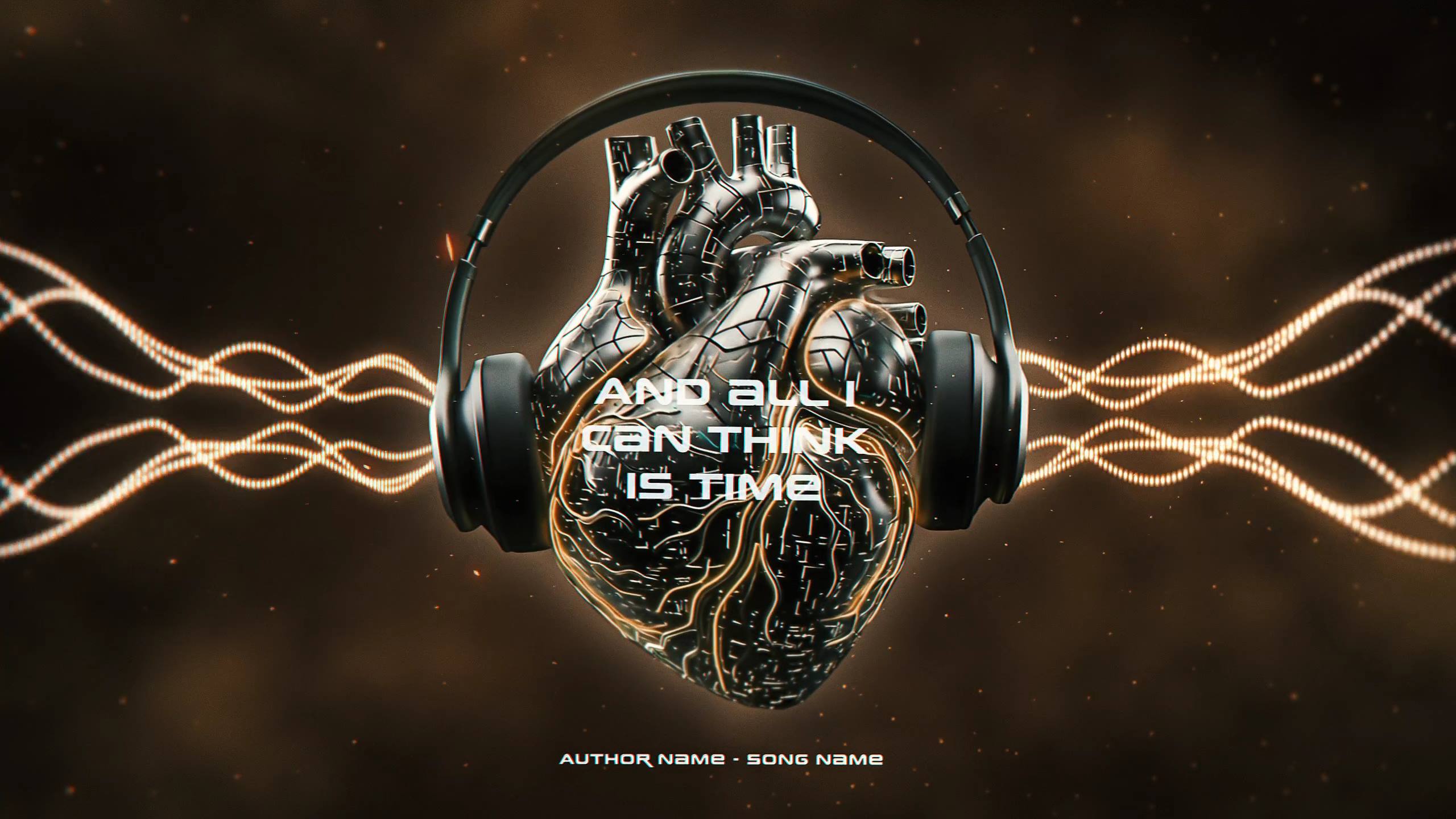 ❤️🔌Bring your track to life with a futuristic lyric video built around a 3D biomechanical heart wearing headphones. An audio‑reactive spectrum, glowing circuitry and subtle particles pulse to your music while clean typography keeps lyrics crisp and readable.