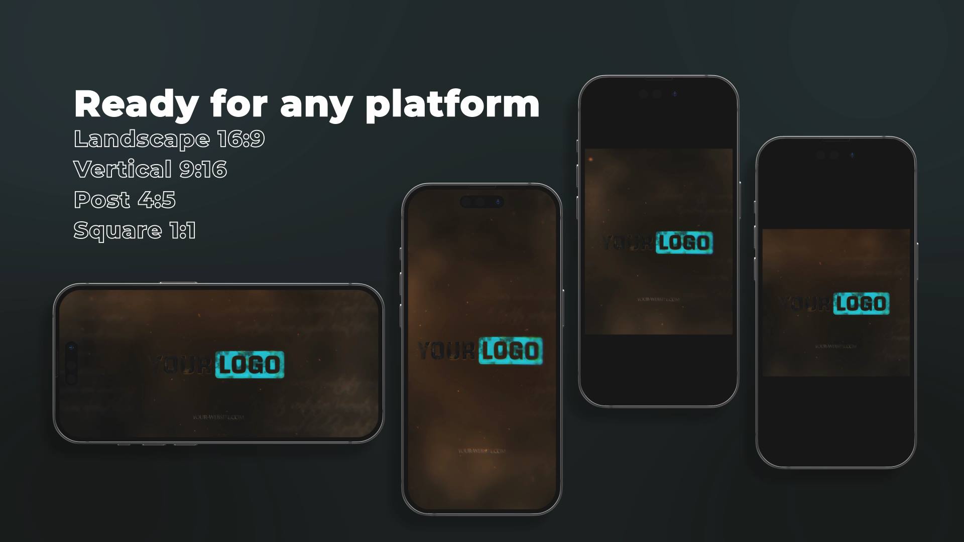 This online fire logo reveal template supports all major formats for web and social media: