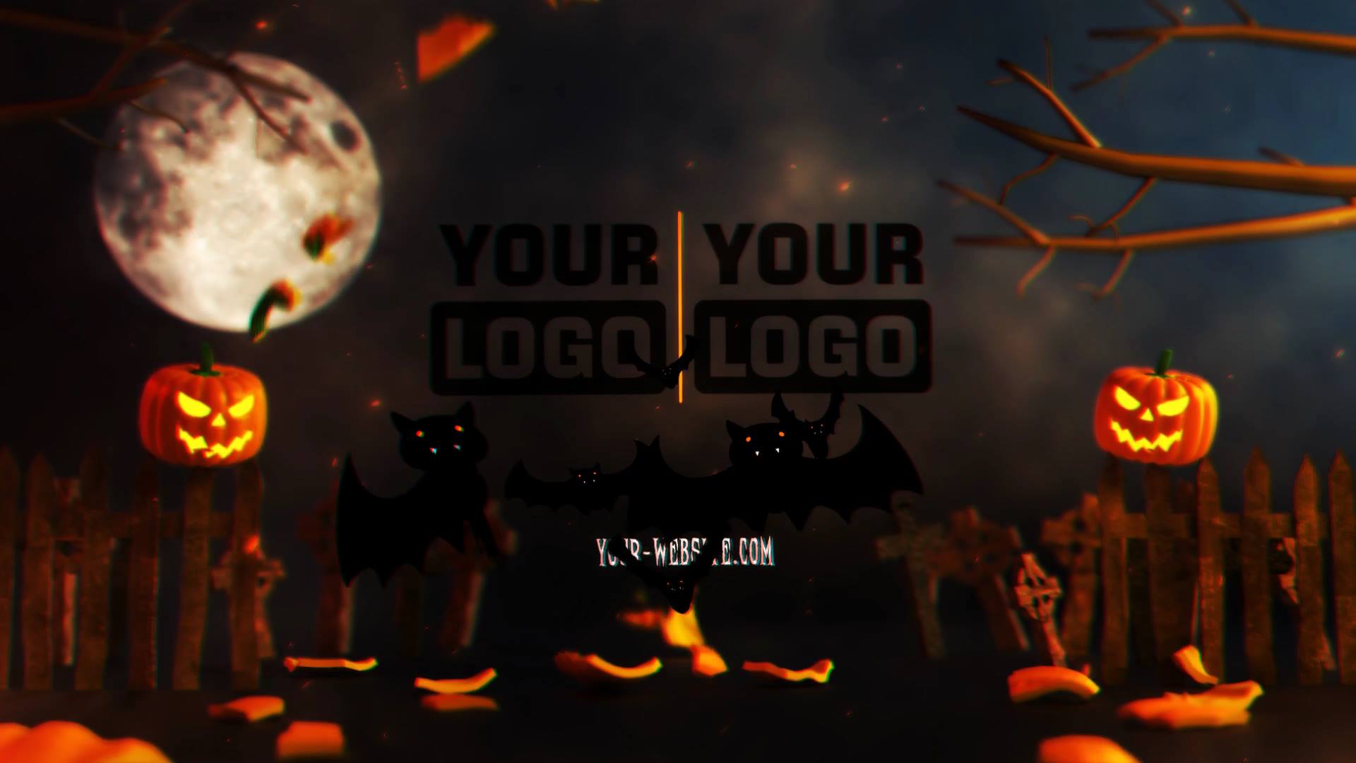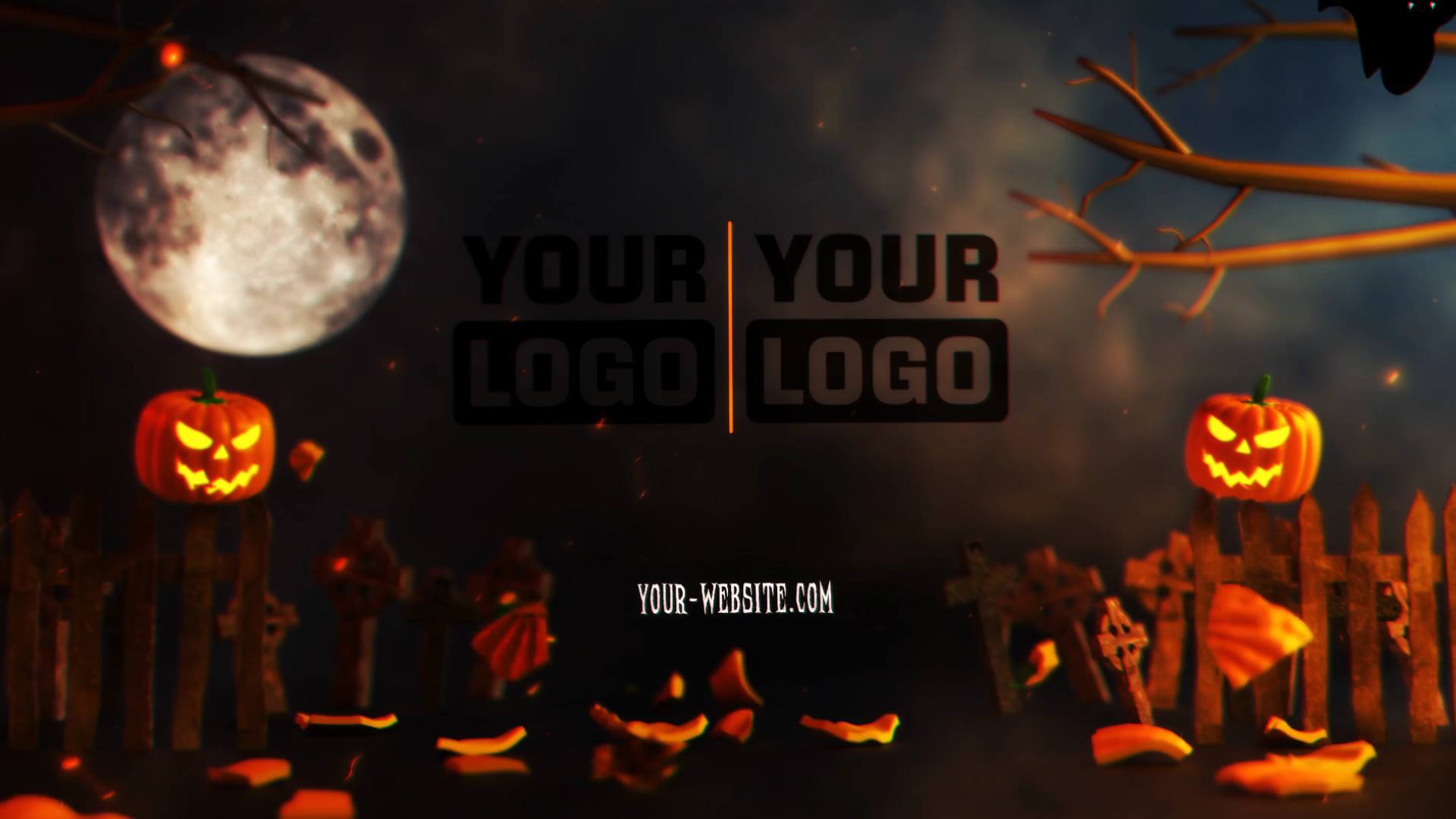 This animation uses aggressive pumpkin visuals, explosive effects, and dark lighting to create fear and adrenaline. Meanwhile, flying debris, smoke, and glowing embers add depth and chaos. At the same time, controlled motion keeps both logos readable at the peak moment. Because of this, the reveal feels powerful, cinematic, and truly scary.
